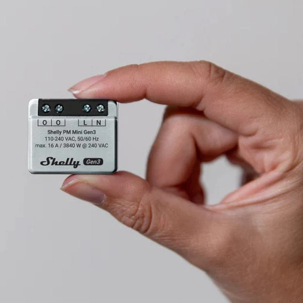 The Shelly PM Mini Gen3 is a small form factor power meter (no relays or switching capability). It's the world's smallest Wi-Fi smart power meter for precise power monitoring. Install in 10 minutes and monitor appliances up to 16A. Equipped with Shelly chip & all Gen3 features.