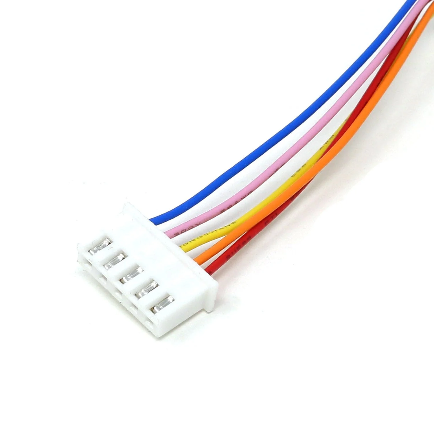 - Unipolar stepper with 0.1" spaced 5-pin cable connector