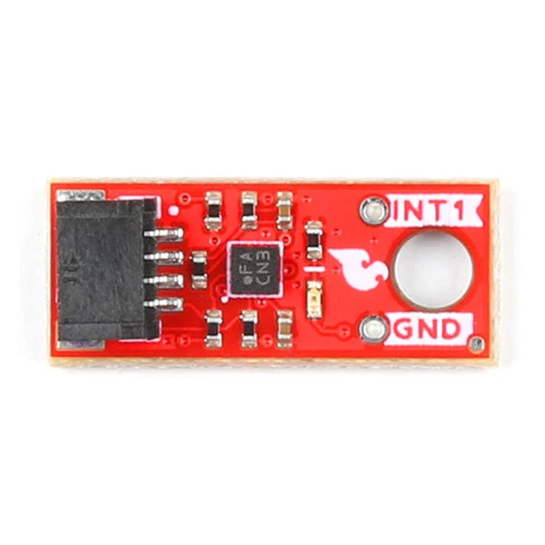 The SparkFun Qwiic BMA400 Micro Triple Axis Accelerometer Breakout offers a 3-axis acceleration sensor perfect for ultra-low-power applications on an easy-to-use Micro Qwiic format breakout board. Dubbed the first "real" ultra-low power acceleration sensor, the BMA400 is perfect when used in both wearable and smart home applications. Where this sensor shines, however, is its ability to distinguish between critical situations and false signals by avoiding false alarms. The Qwiic system allows for integration into your I2C system, requiring no soldering. While the Micro size does not allow for a traditional 0.1"-spaced PTH header for communication, the board does route an interrupt and ground pin to a through-hole connection.