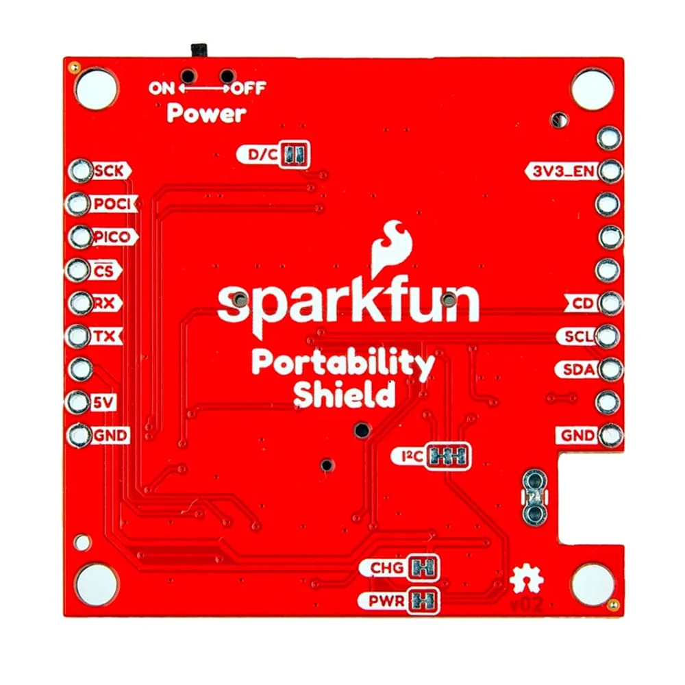 The SparkFun Portability Shield adds all the user interface bits needed to take a SparkFun development board into the field. A LiPo battery connector, charger, fuel gauge, and an on/off switch address your power needs. A friction-fit microSD connector allows for data logging. The 1.3" OLED and a five-way navigation switch provide an excellent user interface. Locking 0.1in. headers along the shield's edge make it easier to solder male pins in place.