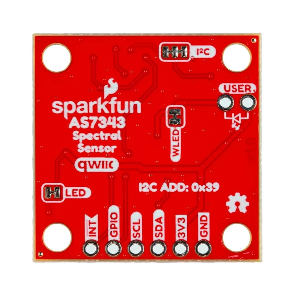 The SparkFun AS7343 Qwiic Spectral Sensor enables users to measure light in both the visible spectrum (VIS) and near-infrared (NIR) ranges, all on a single IC in a compact package. The AS7343 exhibits exceptional sensitivity across its sensing spectrum (~380nm to 1000nm) and operates reliably in low-light environments, including when measuring through tinted glass. It works well for measuring reflected, emitted, and transmitted light, making it an excellent solution for spectroscopy applications, such as colour matching, spectral signature analysis, and more.