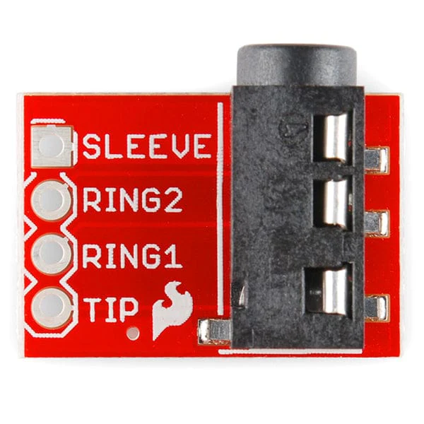 This breakout board makes it easy to add a TRRS jack to your prototype or project by breaking out each conductor to a standard 0.1" spaced header.