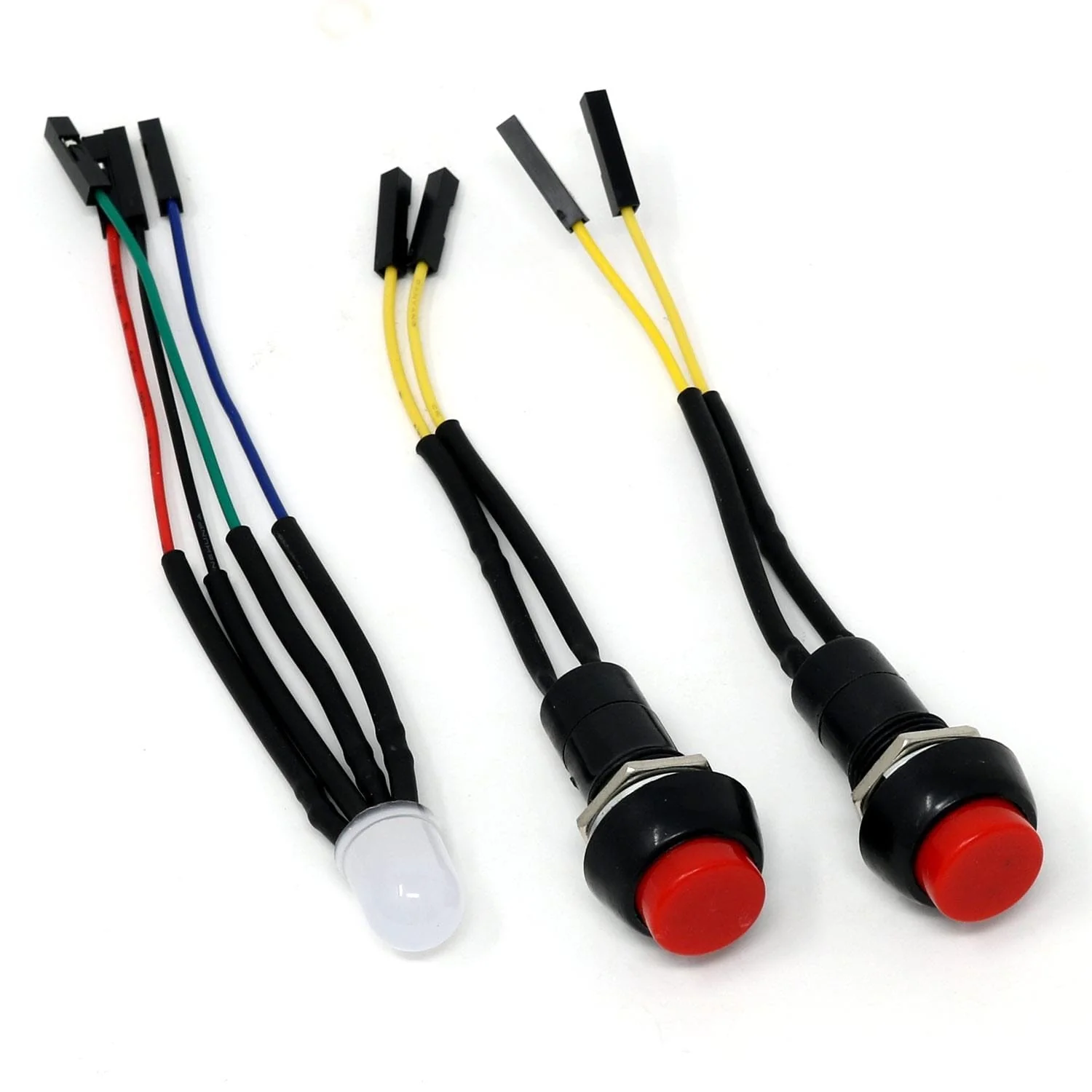 - 2x Squid button (Non-latching) - A momentary action (non-latching) push switch with trailing leads that end in female header sockets that will directly on to GPIO pins on a Raspberry Pi