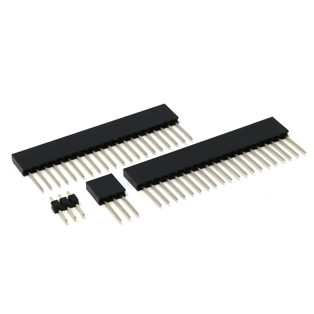 Our Raspberry Pi Pico Stacking Header Set includes two 20-pin stacking header strips for the main GPIO pin sections, a 3-pin stacking header for the debug port and a bonus 3-pin male header (in case you prefer a male header for debugging).