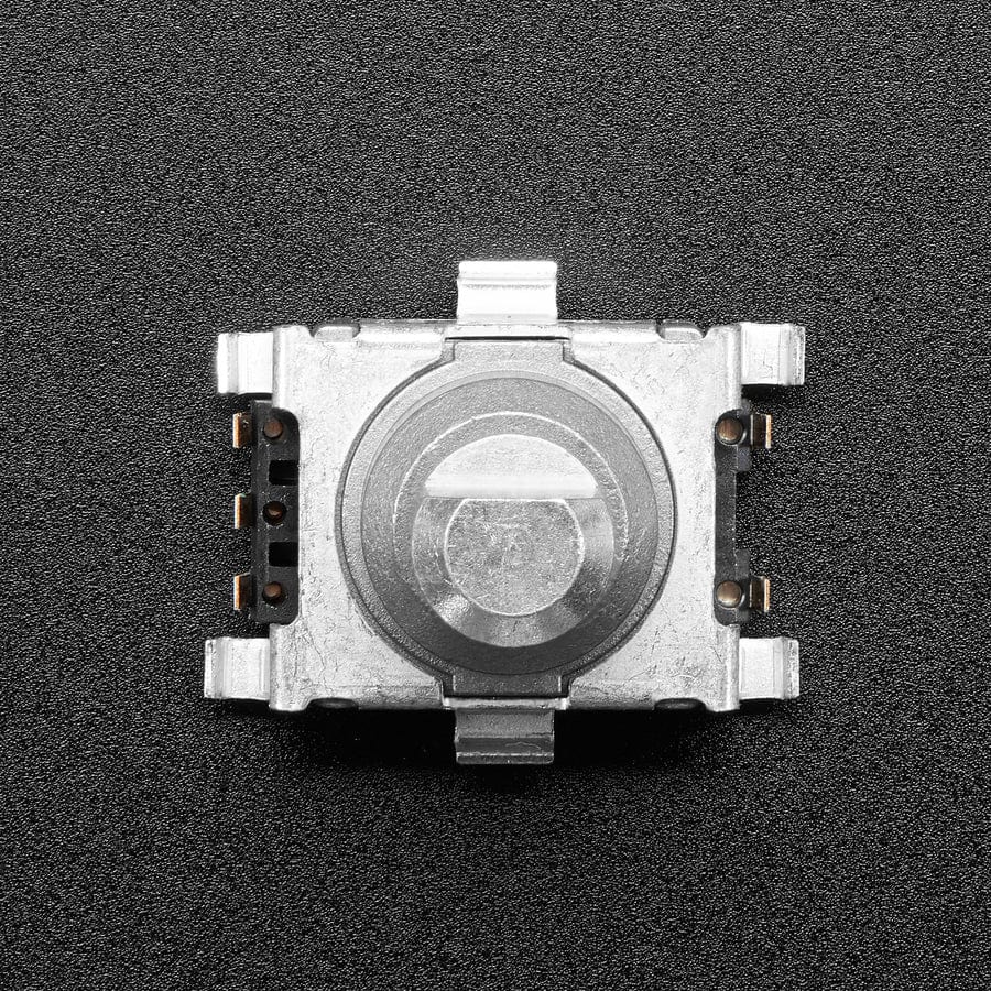 For projects that need a rotary encoder but need to keep it single-sided or need to avoid interrupting traces or devices on the other side, here's an all-SMT rotary encoder! It's a high-quality 30-detents encoder from Alps, with detents and a nice feel. There's a nice smooth bushing for placement in a box.