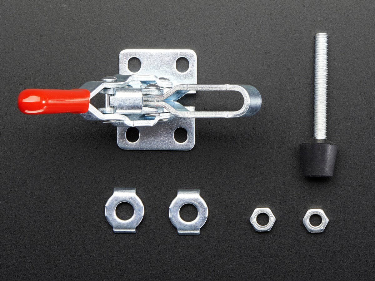 *Ka-thunk* Pin down that little PCB with our Toggle Clamp, a sturdy and reliable way to quickly press and release with precision! A pogo-pin bed is a great way to connect and test boards without any soldering, but you have to somehow get that PCB aligned right and evenly pressed down on each pogo. After much experimenting, we settled on this toggle clamp and we use it all the time in our testing processes.
