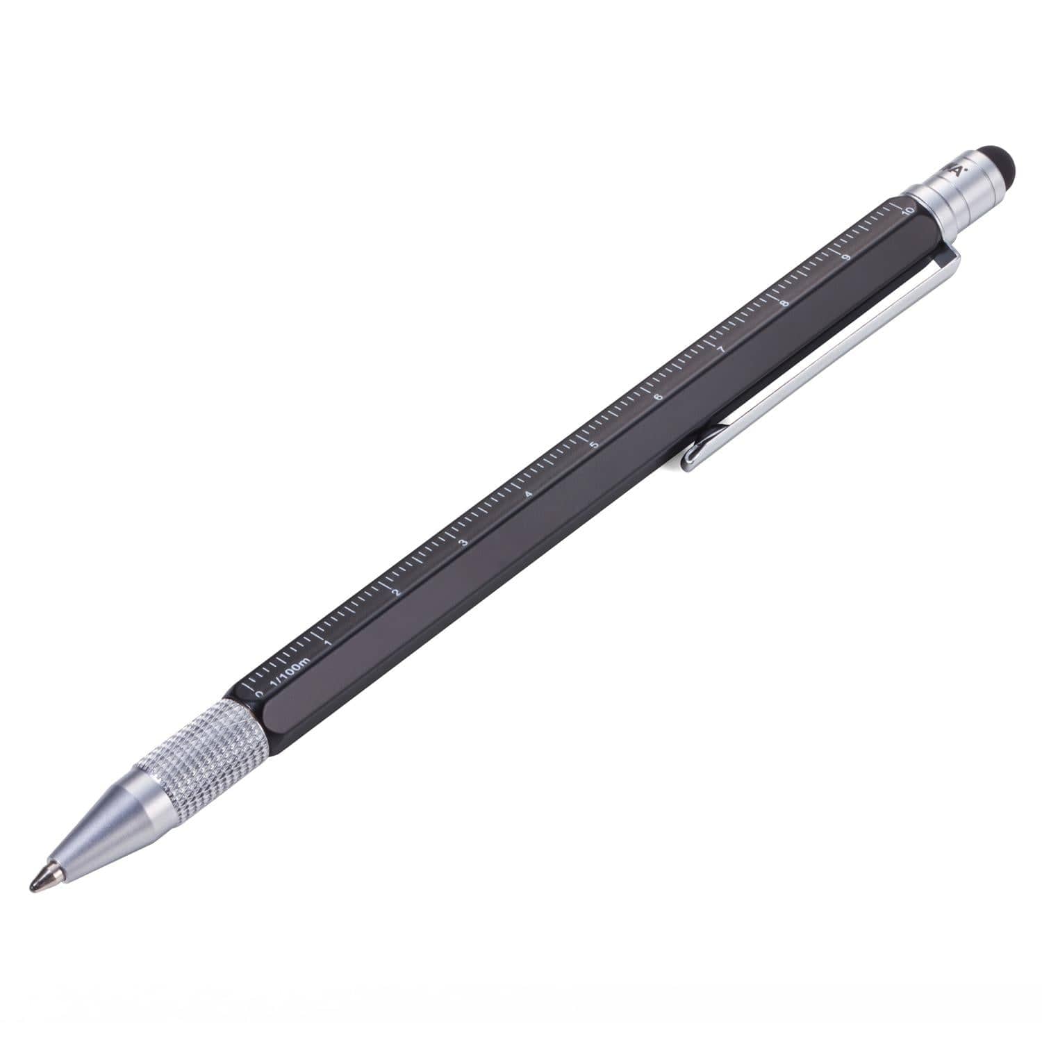 The body of the pen includes four different metric ratios (centimetre/inch - 1:20m and 1:50m scale). The end of the pen includes a quality touchscreen stylus, oh and it's a pen too of course - with a 1.0mm line width in black ink, with a twist-action to expose the tip.