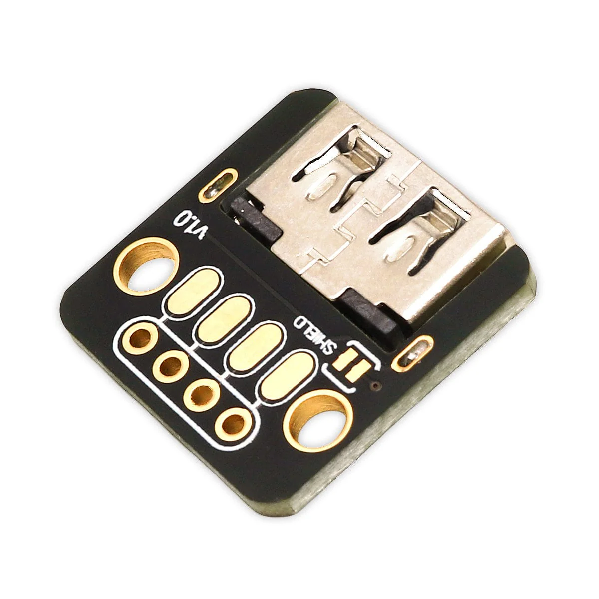 On the underside, you'll find a cuttable trace to disconnect ground from the USB-A connector shield (connected by default), because we've had a few customers asking for this in the past.