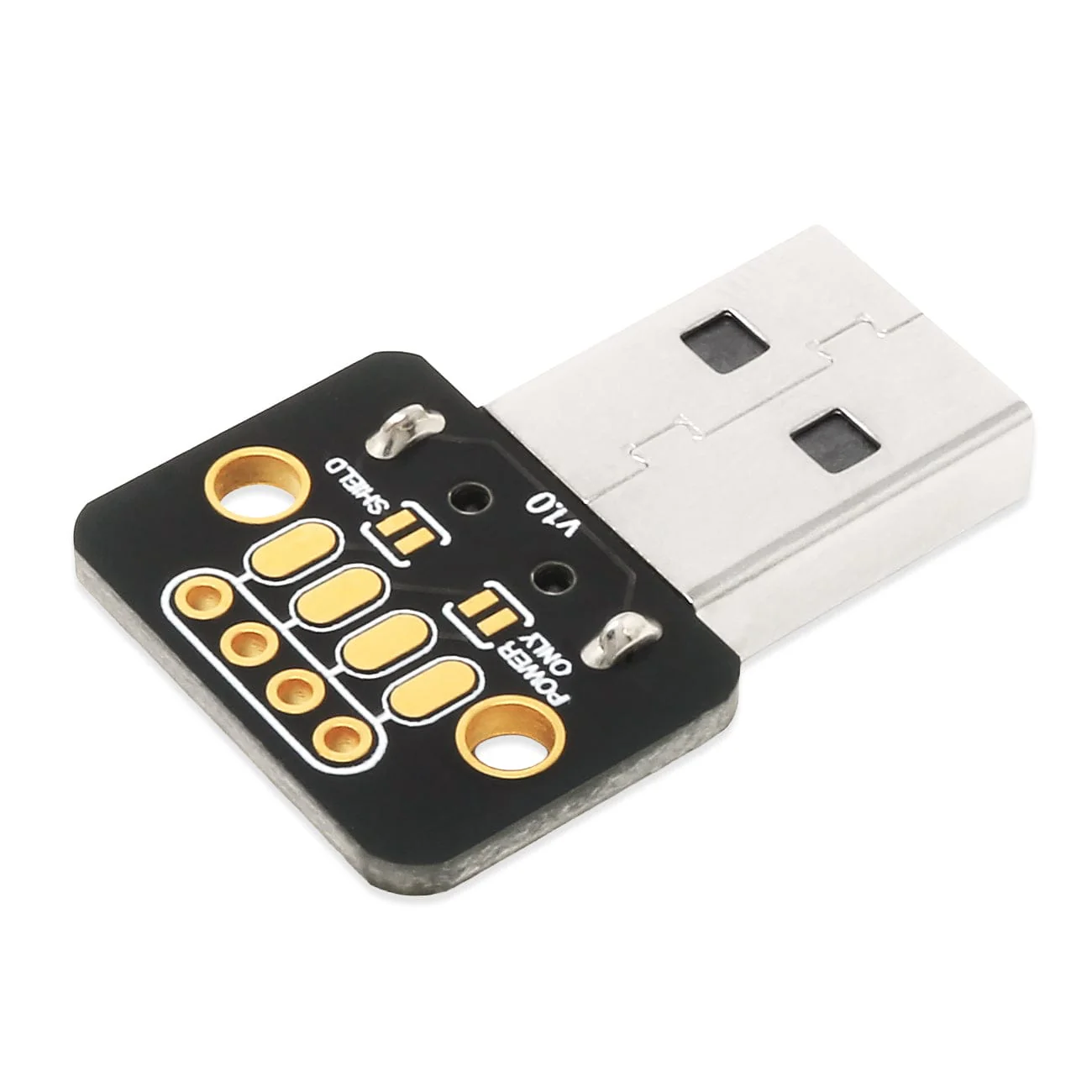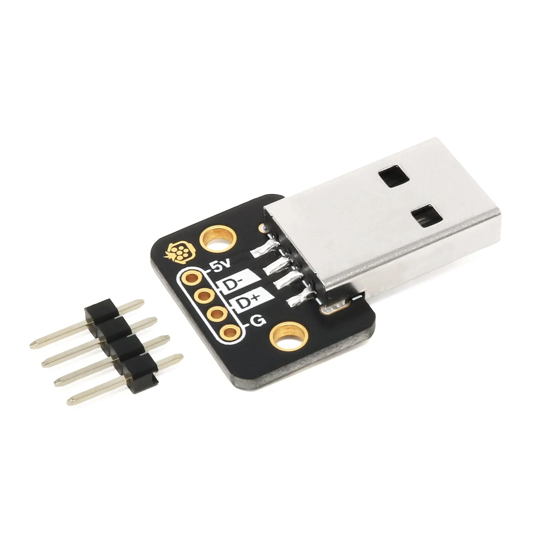 📌 USB-A pins broken out to clearly labelled 2.54mm pads (USB 2.0 speeds for data)