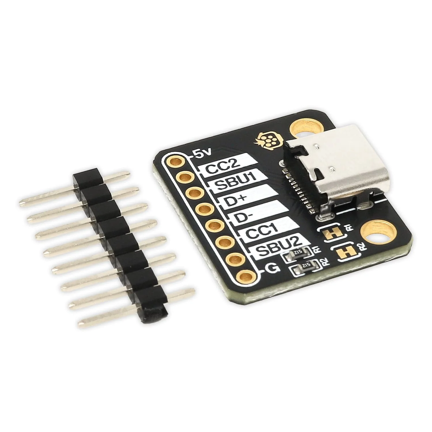 📌 USB-C pins broken out to clearly labelled 2.54mm pads