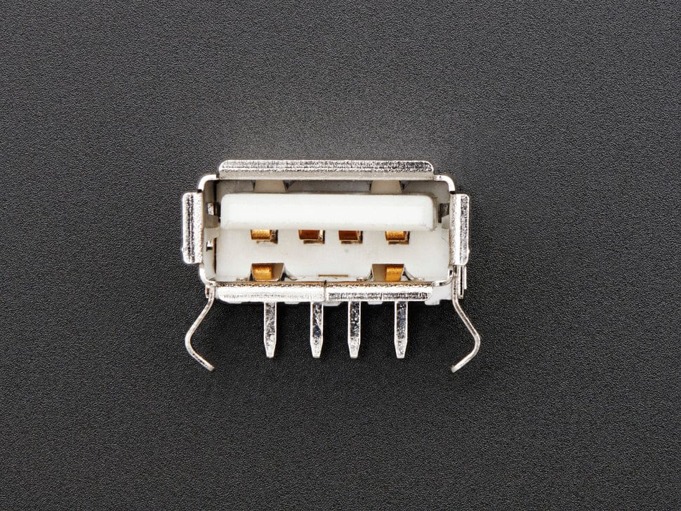 This is just a standard USB-A jack. It's a sturdy metal with 4 pins in the back and 2 small mounting tabs that make it easy to use in your next USB project
